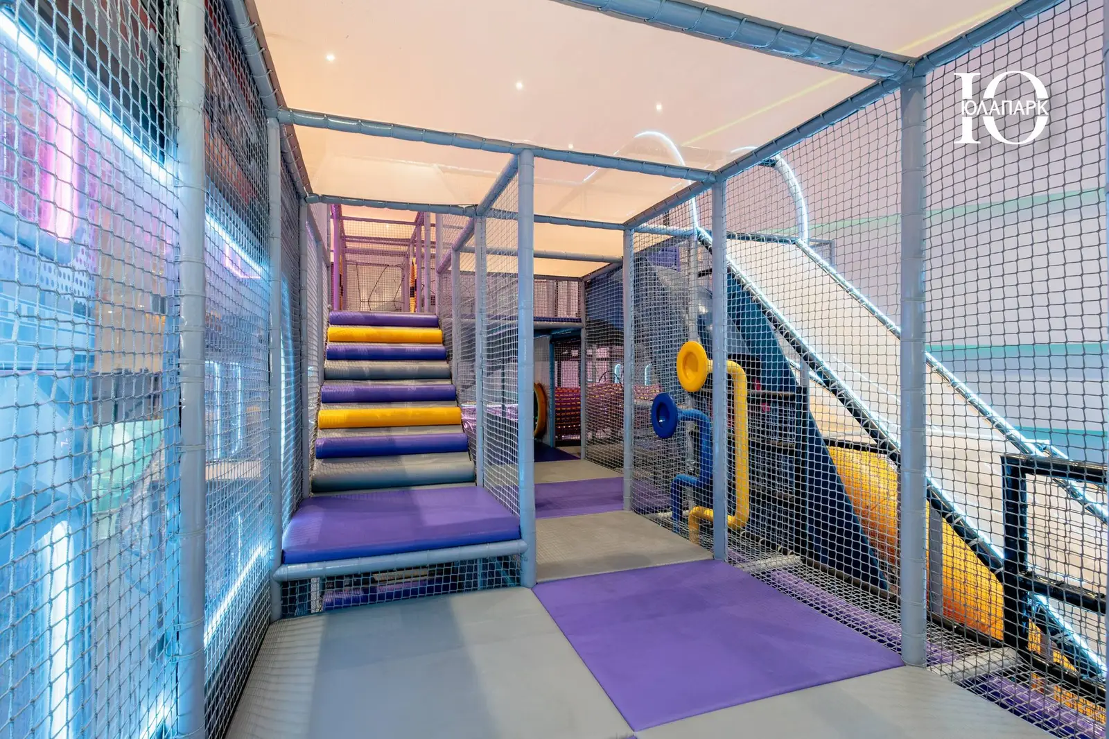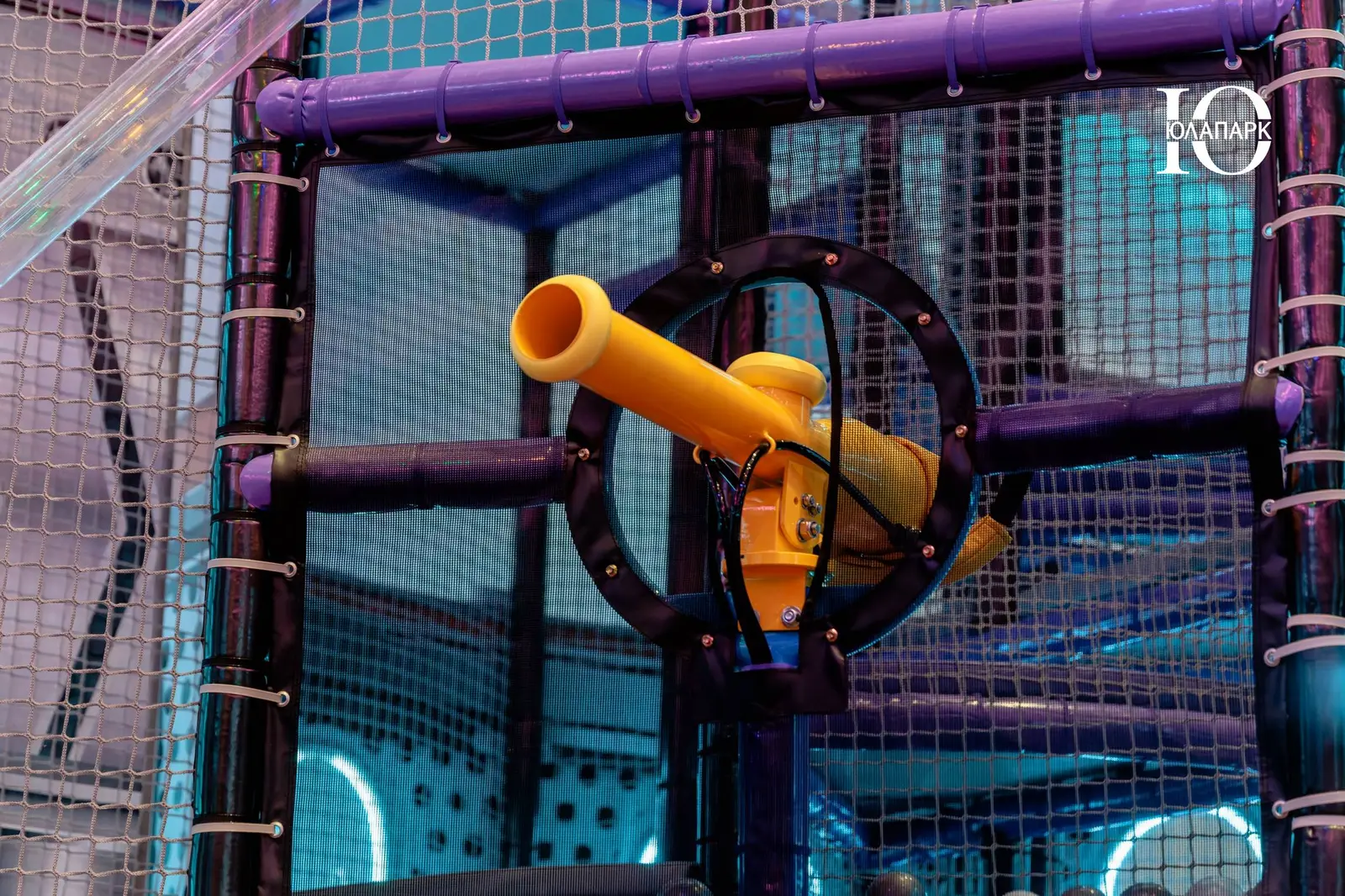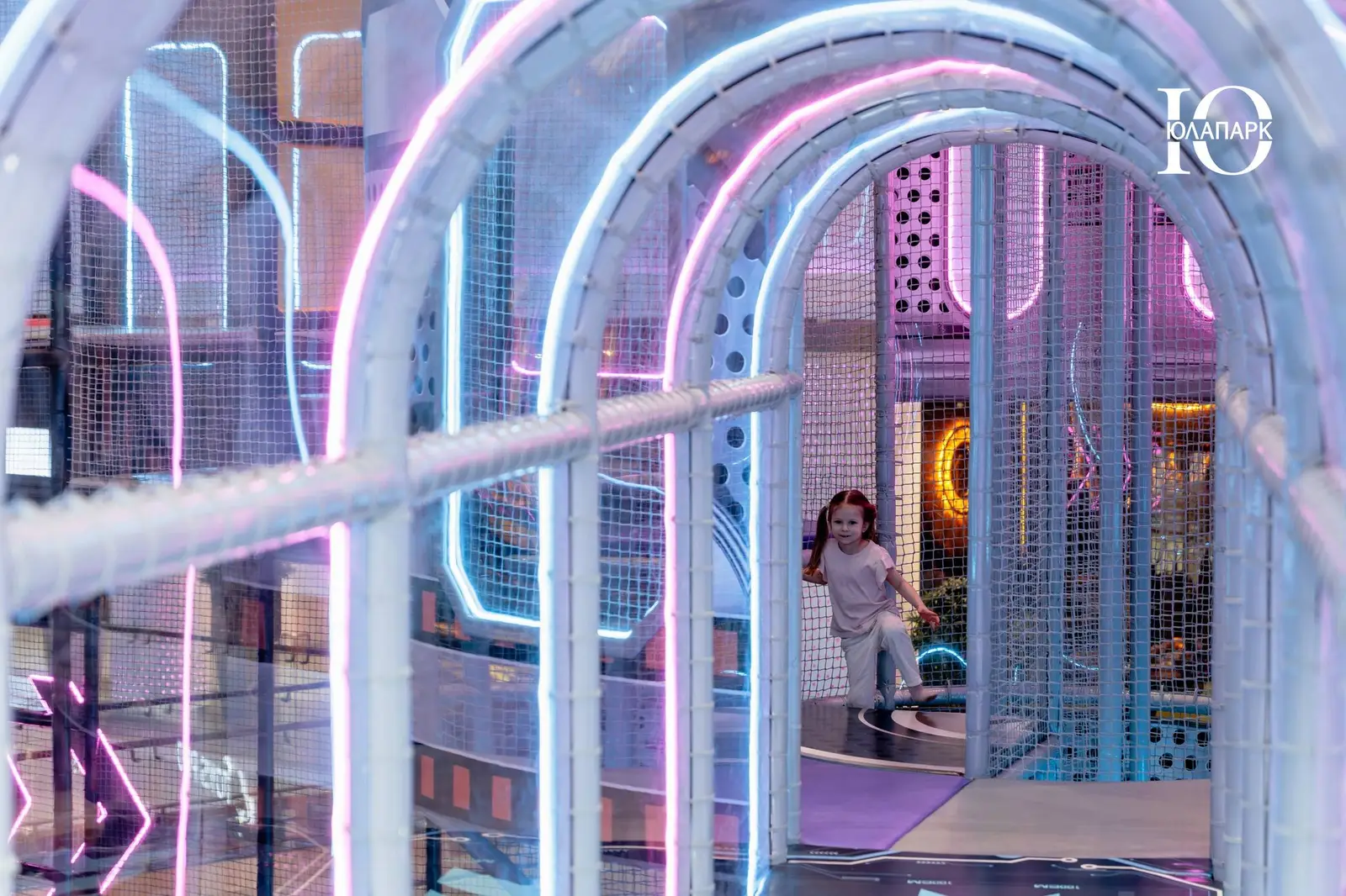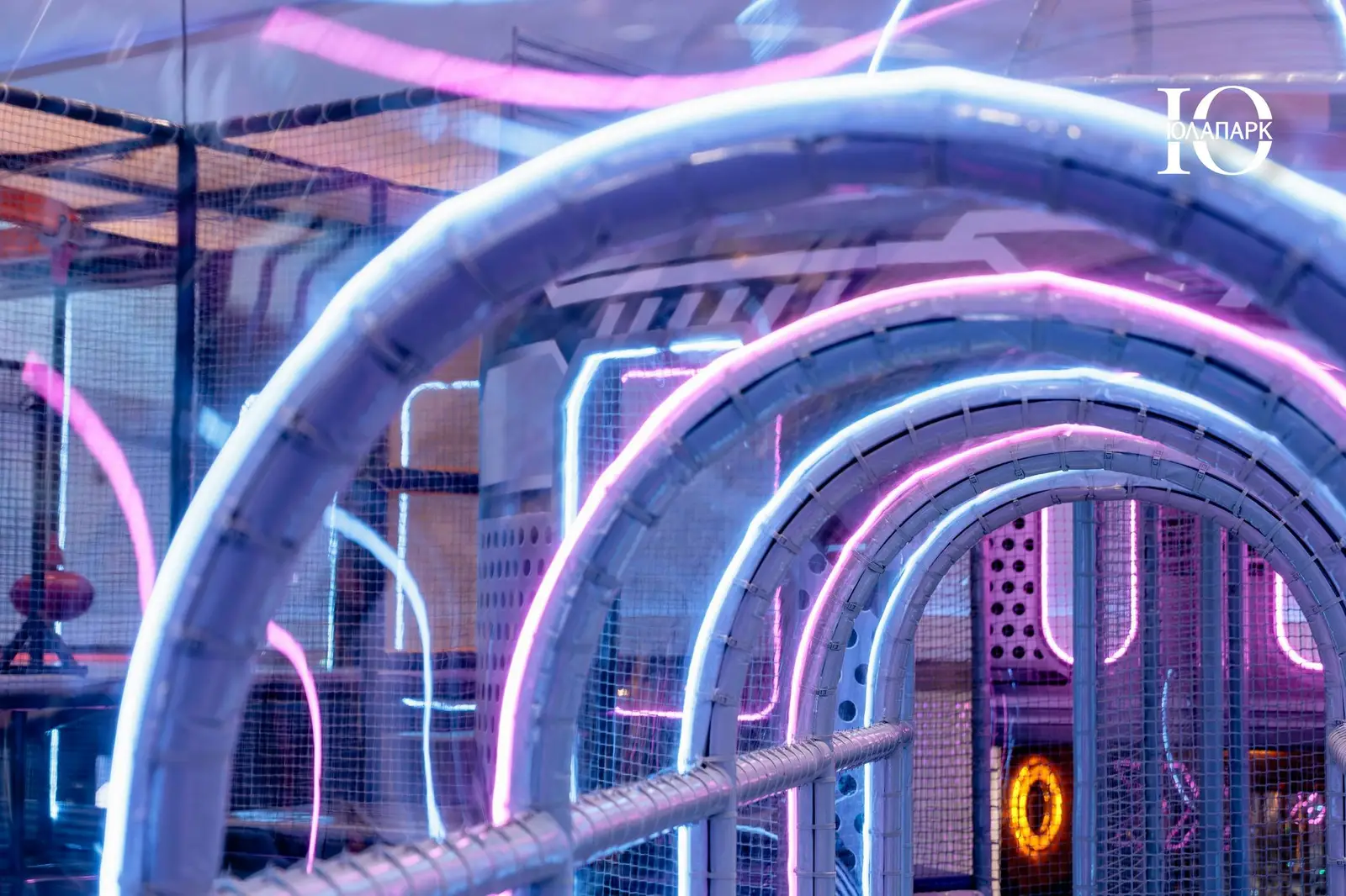Сам парк выполнен в стиле космической станции, где есть две зоны — основная и для малышей. В этот раз мы использовали нетипичную площадь, которую заняли усложненными лабиринтами с препятствиями, высокими горками, игровыми домиками, спортивными зонами, ареной с пушками, а также большим количеством интерактива внутри!