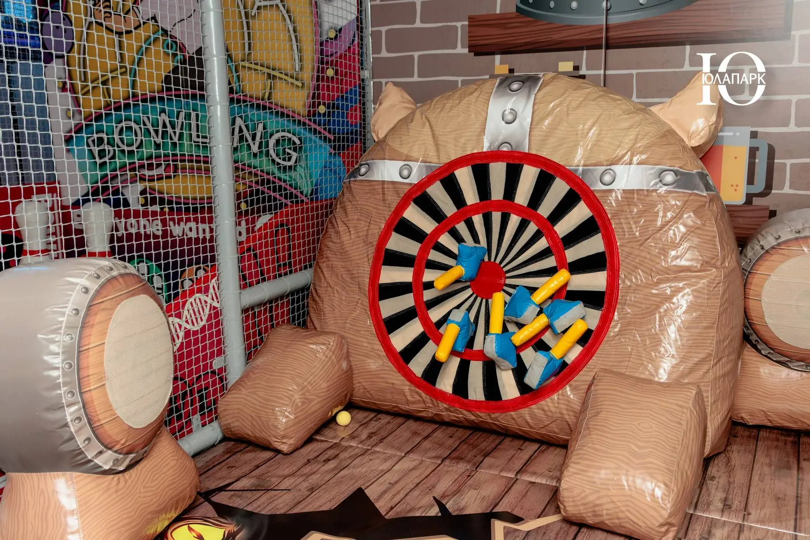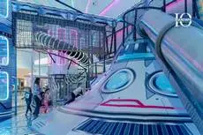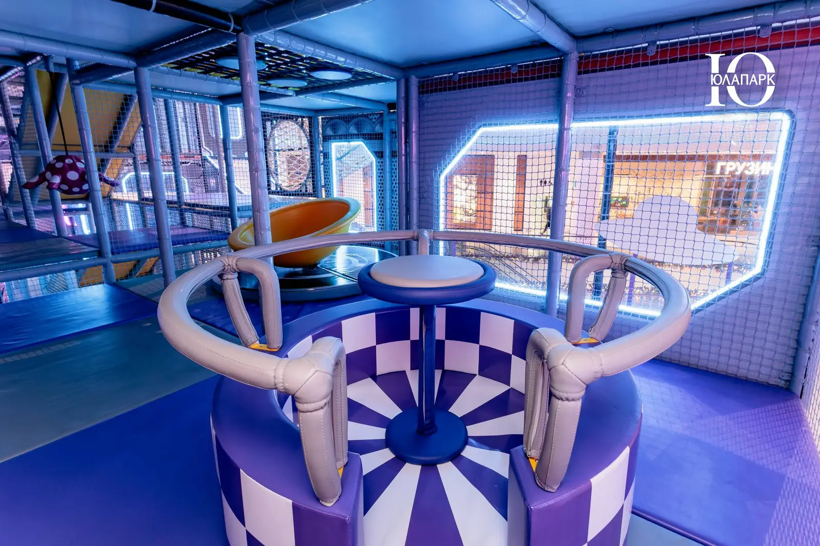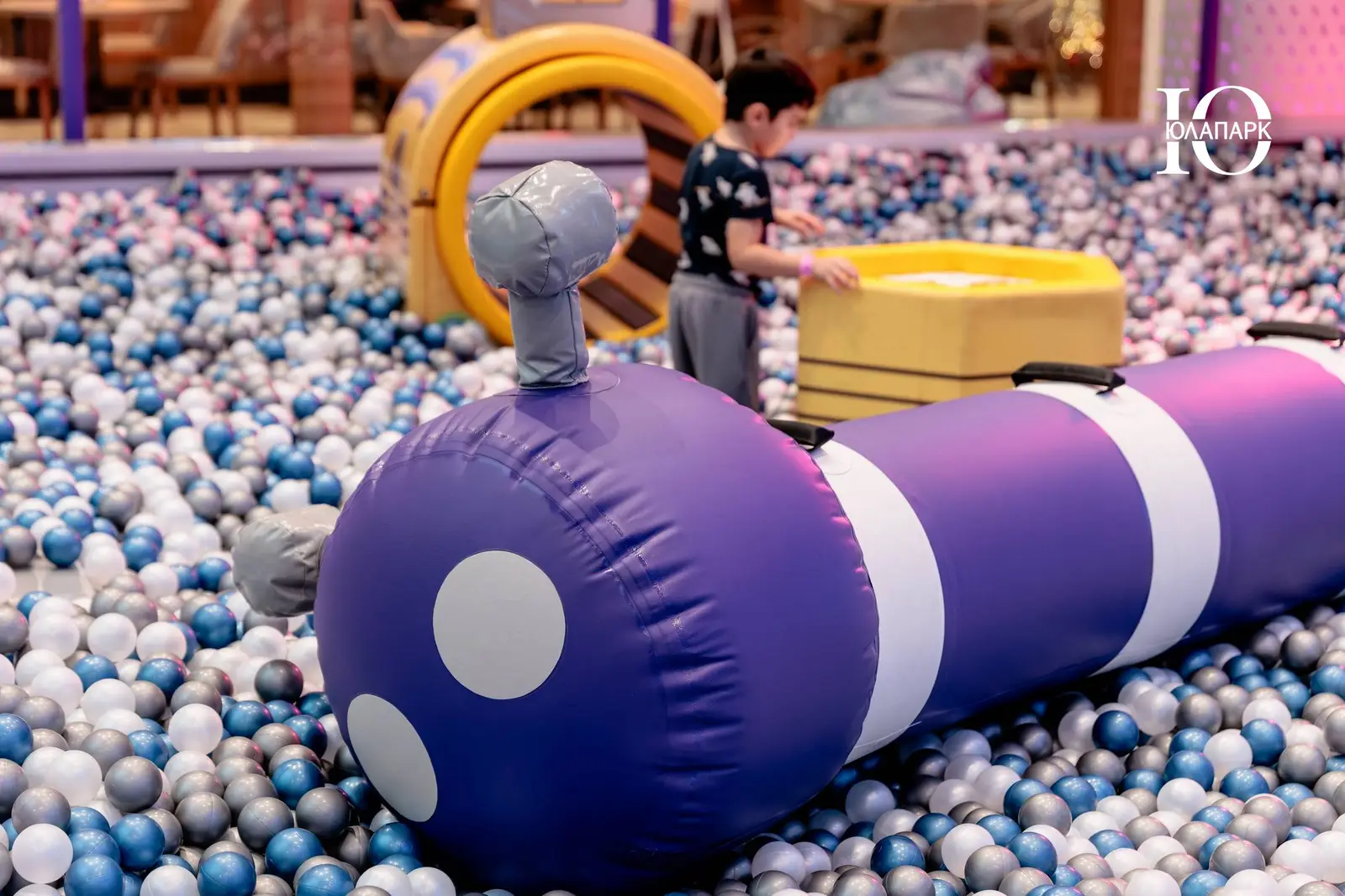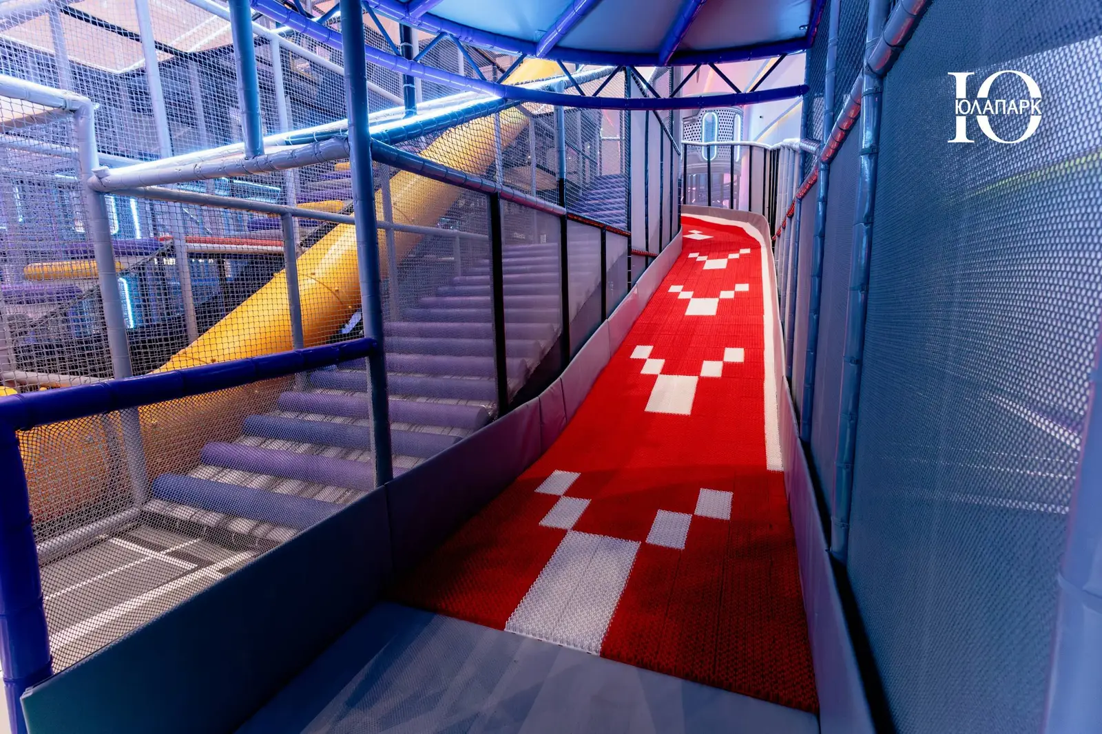 Сам парк выполнен в стиле космической станции, где есть две зоны — основная и для малышей. В этот раз мы использовали нетипичную площадь, которую заняли усложненными лабиринтами с препятствиями, высокими горками, игровыми домиками, спортивными зонами, ареной с пушками, а также большим количеством интерактива внутри!