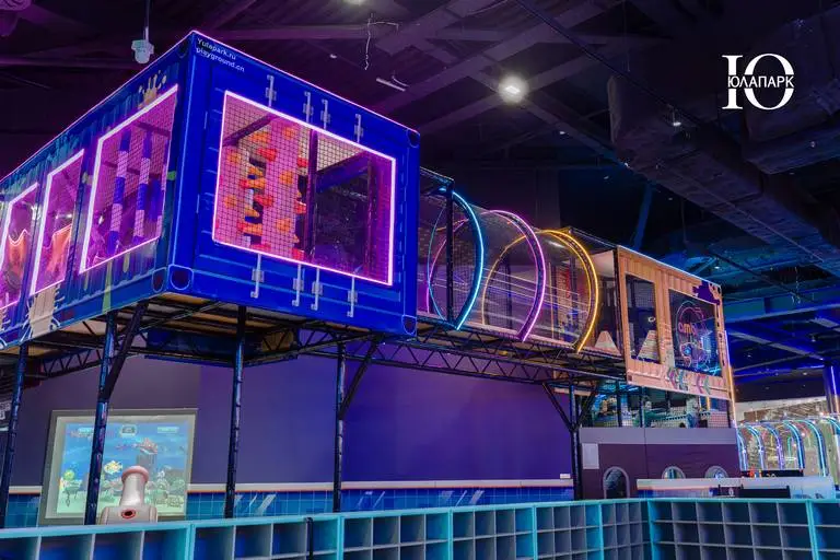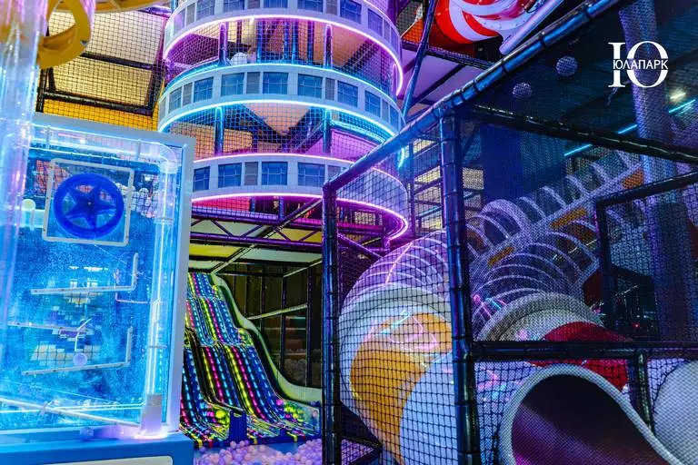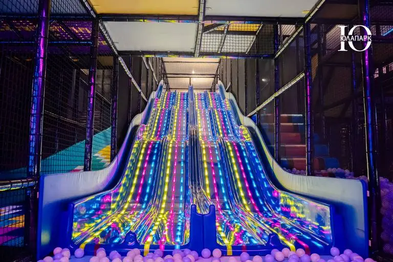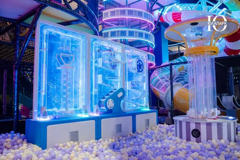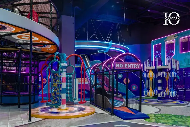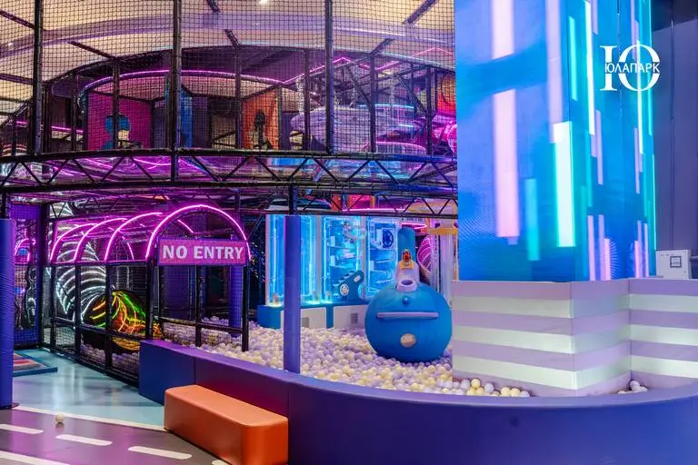 В проекте в VEGAS Сити мы реализовали совершенно новые и захватывающие аттракционы — мото-колесо 360, электрический скайрайдер, большие батутные зоны и баттл-арена, новые усложненные лабиринты с препятствиями, различные горки, в том числе свободного падения, а также игровые домики для малышей.