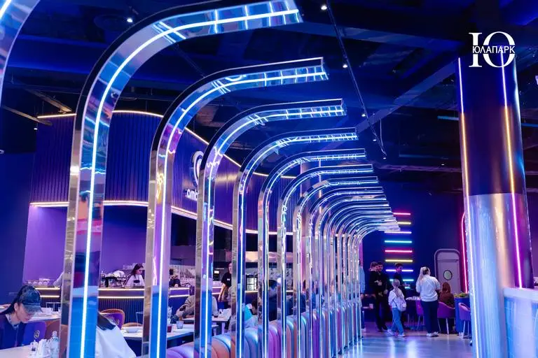Каждая локация уникальна — она имеет свою стилистику, уникальные аттракционы и собственный семейный ресторан с переосмысленной кухней, которые сопровождаются нашим фирменным стилем в виде большого количества подсветки и футуристическим дизайном.